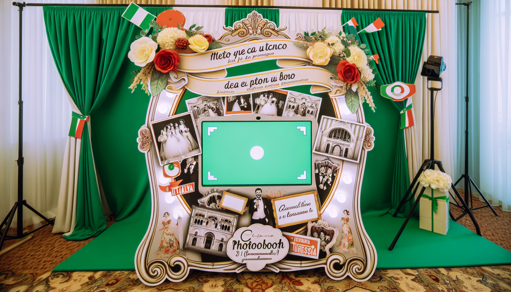 Grazie alla tecnologia, puoi scegliere tra decine di template foto personalizzati e sfondi photobooth che si adattano al tema del tuo evento, dal classico elegante al più stravagante e giocoso. Questo permette di allineare perfettamente il photobooth matrimonio o aziendale al mood scelto, rendendo ogni scatto un’opera d’arte.